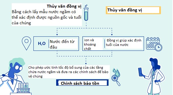 Biến đổi khí hậu ảnh hưởng đến các nguồn tạo mưa và sự phân bố mưa trên toàn thế giới, dẫn đến những thay đổi dòng chảy của sông và việc bổ cấp nước ngầm. Sử dụng kỹ thuật thủy văn đồng vị có thể hiểu được cách thức các tầng chứa nước ngầm được bổ cấp và mức độ dễ bị tổn thương của chúng trước biến đổi khí hậu. Dữ liệu thu được giúp quản lý, bảo vệ và bảo tồn hệ thống nước ngầm. Bên cạnh đó, kỹ thuật thủy văn đồng vị giúp kiểm tra thành phần đồng vị của hydro và oxy trong nước. Do các thành phần đồng vị của nước liên quan đến thời gian và những nơi có mưa, kỹ thuật này có thể theo dõi nước đến từ đâu, do đó có thể bảo vệ nguồn nước đó.